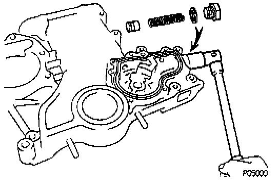 Remove the plug, gasket, spring and relief valve.