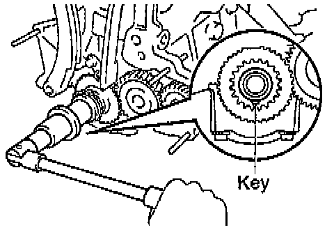 Turn the crankshaft until the set key on the crankshaft facing downward.