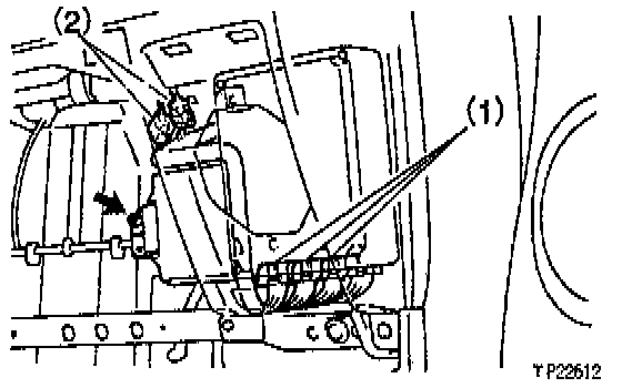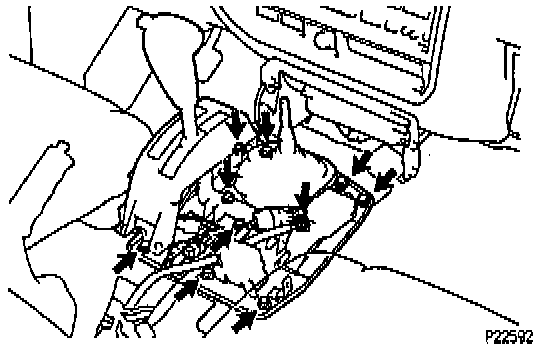 (b) Remove the 2 nuts holding the engine front mounting insulators to the frame.