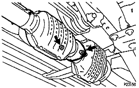 (b) Remove the 2 nuts and 2 bolts holding the front exhaust pipe to the rear Three-Way Catalytic Converter (TWC).