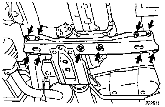 (b) Remove the 8 bolts and crossmember.