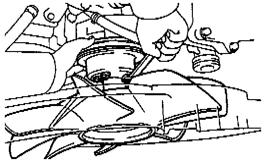 (e) Connect the oil cooler hose to the clamp on the fan shroud.