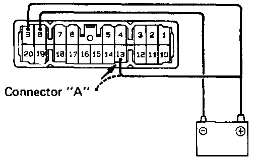 c. Then, connect the positive (+) lead from the battery to terminal A-13 and check that the indicator dims.