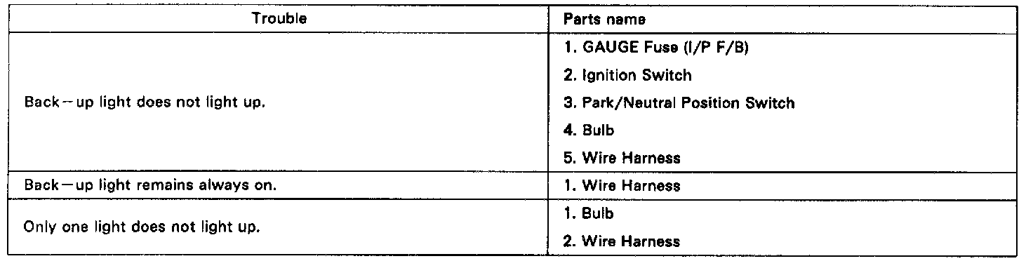 Troubleshooting / Back-Up Light System: