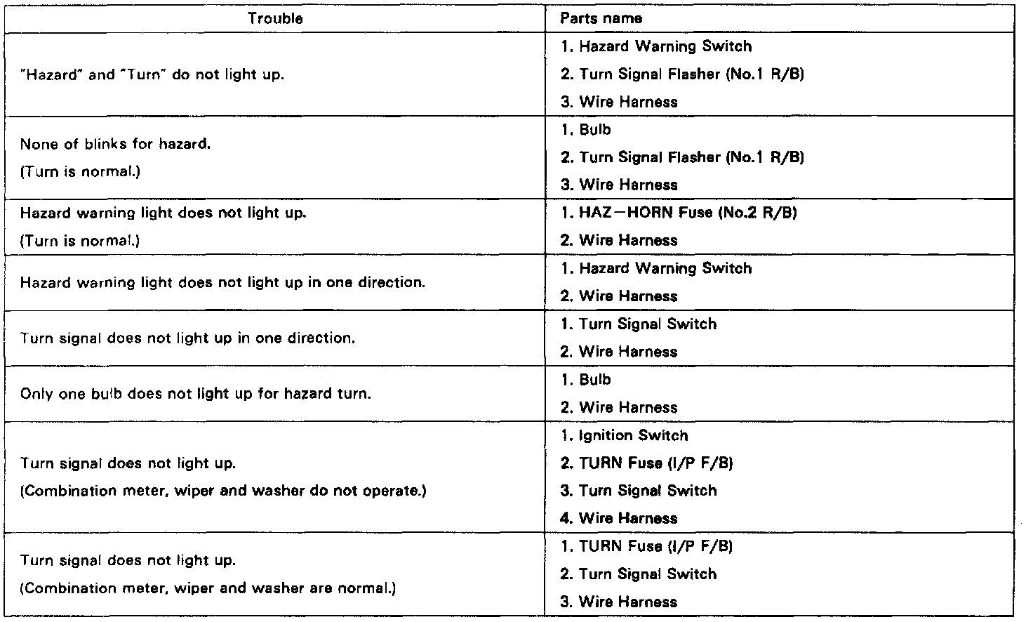 Troubleshooting / Turn Signal and Hazard Warning System: