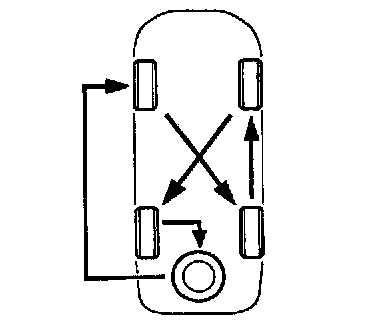 2. To rotate the tires, see the illustration for where to rotate each tire.