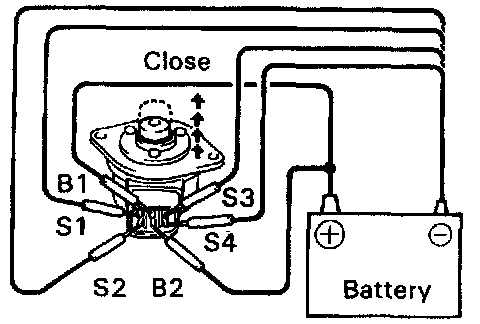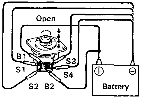 (b) Apply battery voltage to terminals B1 and B2 and while repeatedly grounding S4 - S3 - S2 - S1 - S4 in sequence and check that the valve moves toward the open position.