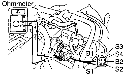 (b) Using an ohmmeter, measure the resistance between the terminals (B1 - S1 and S3, B2 - S2 and S4).