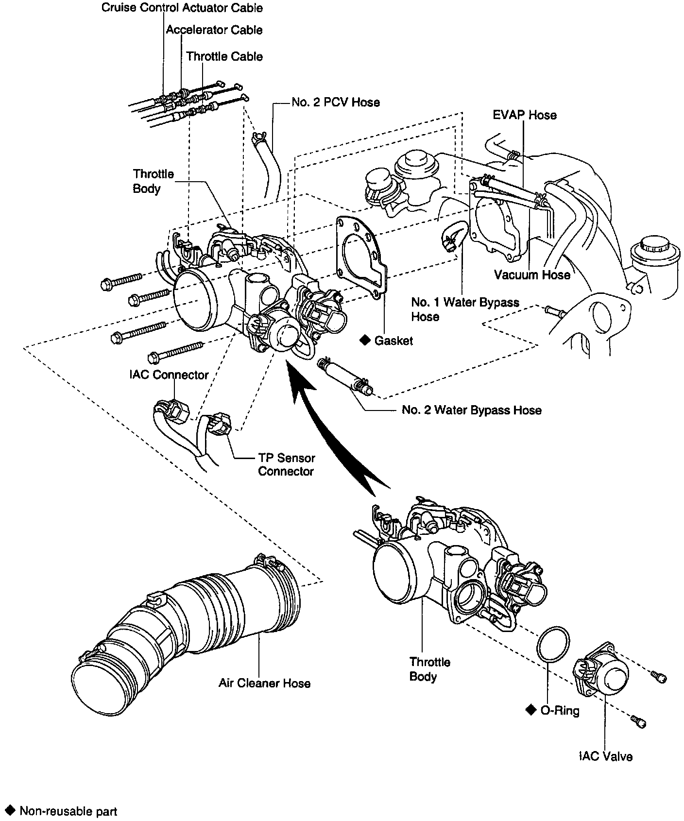 4. Reinstall throttle body in reverse order of removal.