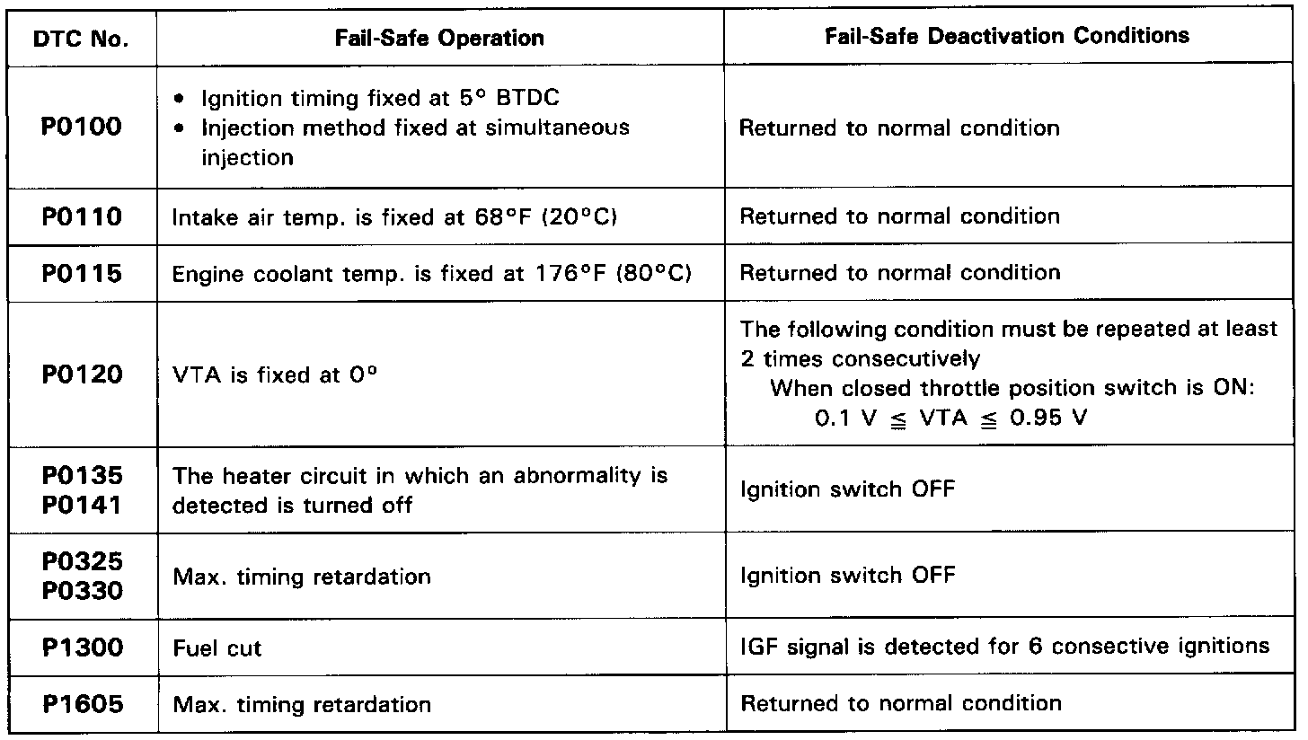 If any of the following codes is recorded, the ECM enters fail-safe mode.