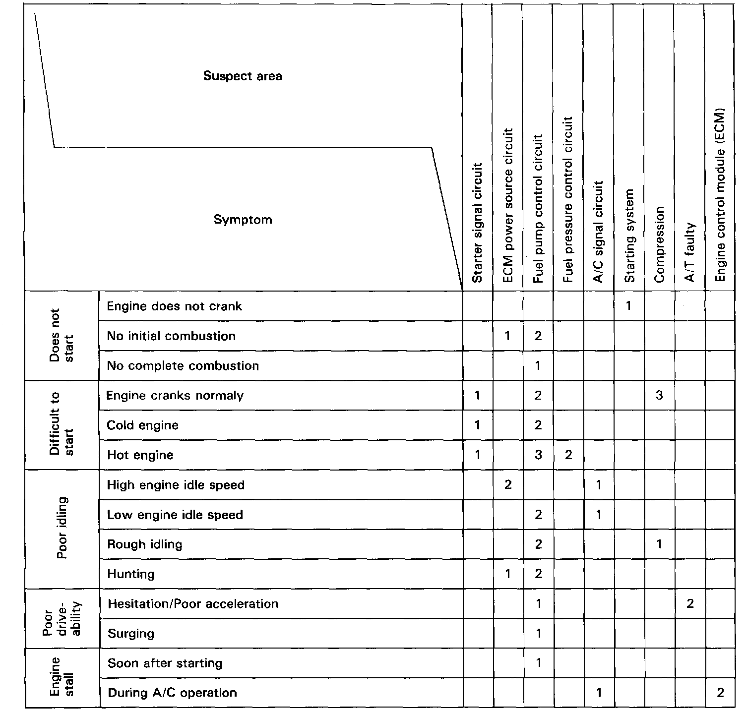 MATRIX CHART OF PROBLEM SYMPTOMS