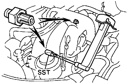 (b) Using SST, remove the knock sensor. SST 09816-30010