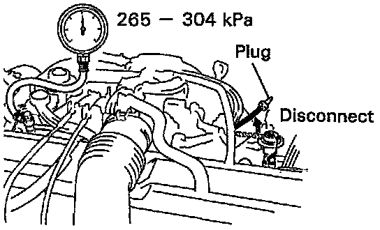 If pressure is not as specified, check the vacuum sensing hose and fuel pressure regulator.