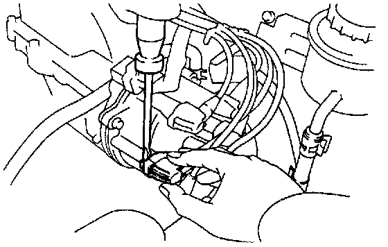 (a) Using a screwdriver. lift up the lock claw and disconnect the holder from the distributor cap (ignition coil).