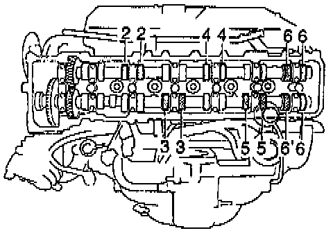 ^ Record the out-of-specification valve clearance measurements. They will be used later to determine the required replacement adjusting shim.