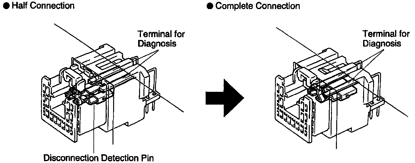 The electrical connection check mechanism is designed so that the connection detection pin connects with the diagnosis terminals when the connector housing lock is in the locked condition.