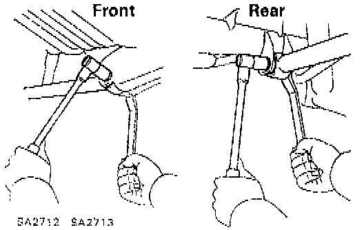 3. Remove the lower control arm by removing the two bolts, plate washers, nuts and lower control arm from the frame.