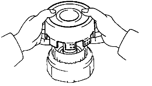 b. Being careful not to damage the O-rings, press in the direct clutch piston into the clutch drum with both hands.