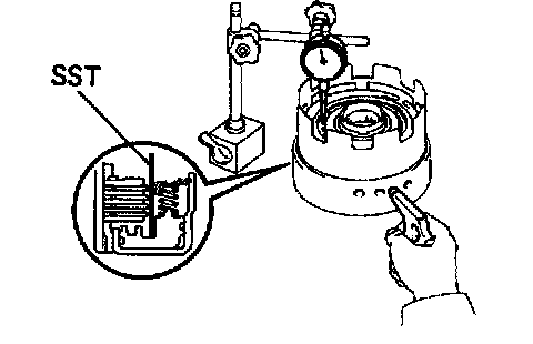 Using a dial indicator, measure the inside diameter of the clutch drum bushing.