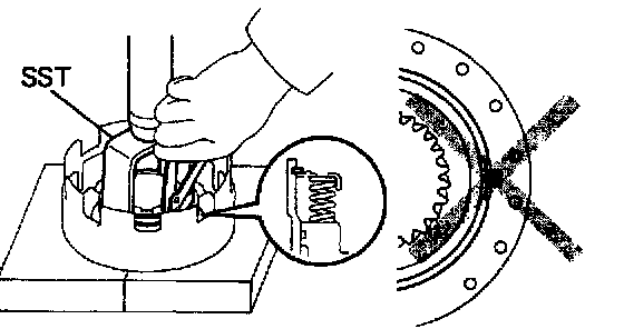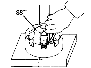 a. Place SST on the spring retainer and compress the return spring with a press.