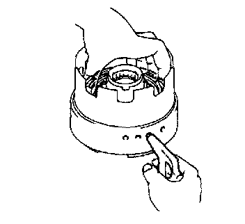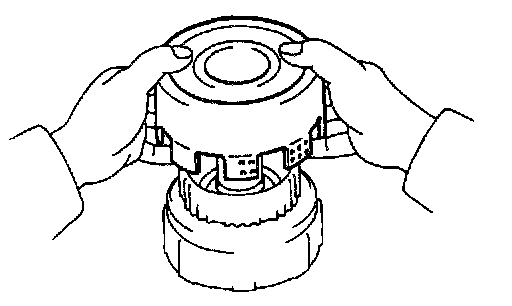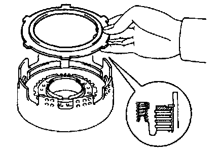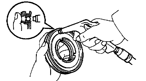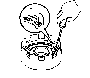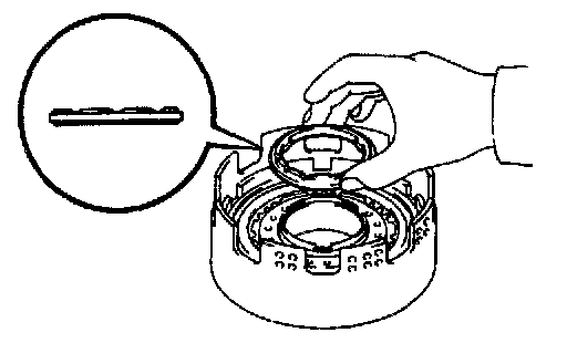 c. Install the snap ring with a screwdriver. Be sure the end gap of the snap ring is not aligned with the cutout portion of the direct clutch drum.