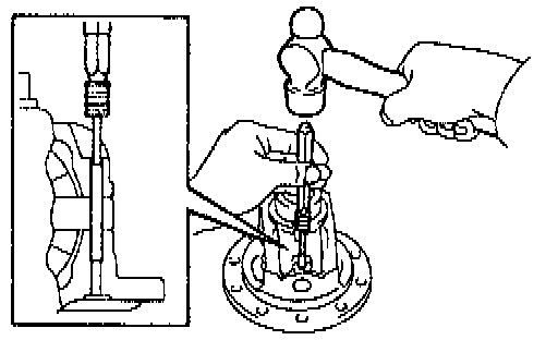 f. Using a chisel and hammer, stake the out side of the differential case pin hole.