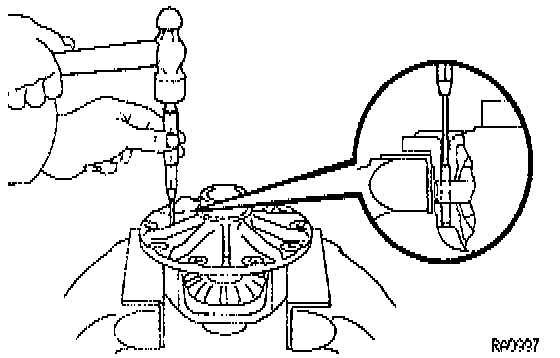 a. Install the differential case in the differential carrier and tighten the adjusting nut just to where there is no play in the bearing.