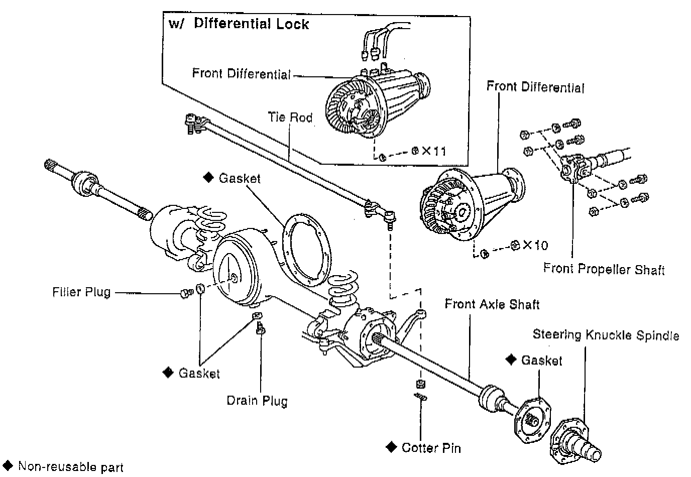 2. Remove the front axle shafts.