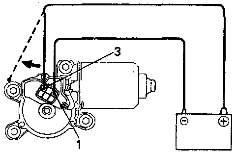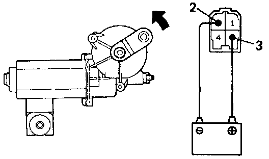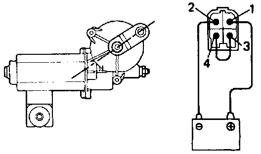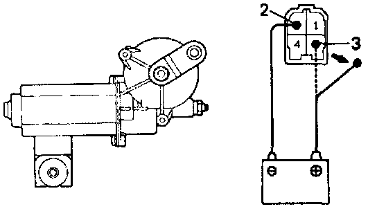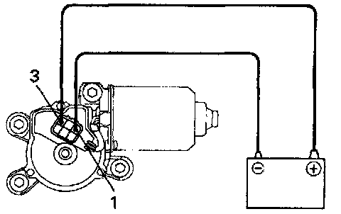 Connect the positive (+) lead from the battery to terminal 3 and negative (-) lead to terminal 1, and check that the motor operates at low speed.