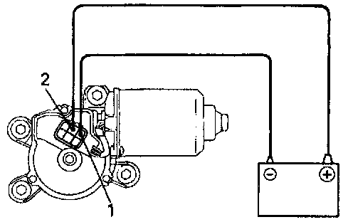 3. Connect the positive (+) lead from the battery to terminal 1 and the negative (-) lead to terminal 2, and check that the motor stops running at the stop position after the motor operates again.