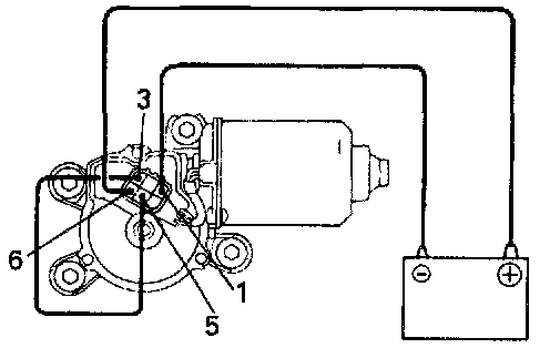 3. Connect the positive (+) lead from the battery to terminal 6 and the negative (-) lead to terminal 1, and check that the motor stops running at the stop position after the motor operates again.