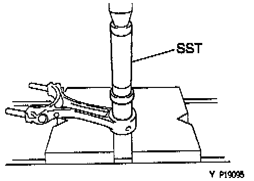 (a) Using Special Service Tool (SST) Connecting Rod Bushing Remover & Replacer # 09222-40011 or equivalent and a press, press out the bushing.
