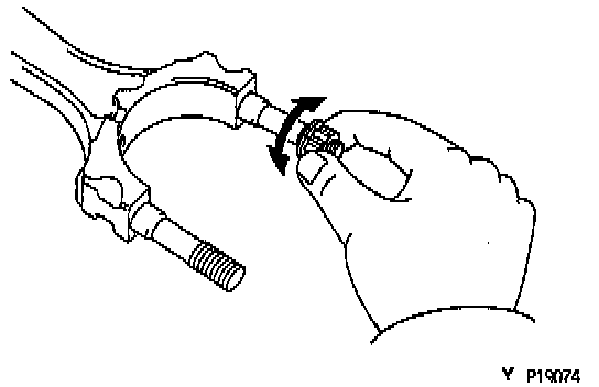 (b) If the cap nut cannot be turned easily, measure the outside diameter of the connecting rod bolt with vernier calipers.