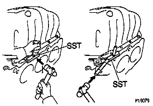 (b) Insert the blade of Special Service Tool (SST) Oil Pan Seal Cutter # 09032-00100 or equivalent between the cylinder block and oil pan, and cut off applied sealer and remove the oil pan.