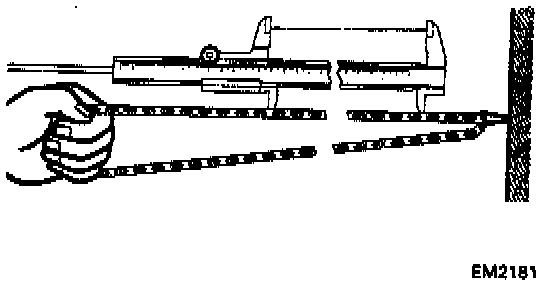 CAUTION: Vernier calipers must contact the chain rollers for measuring.