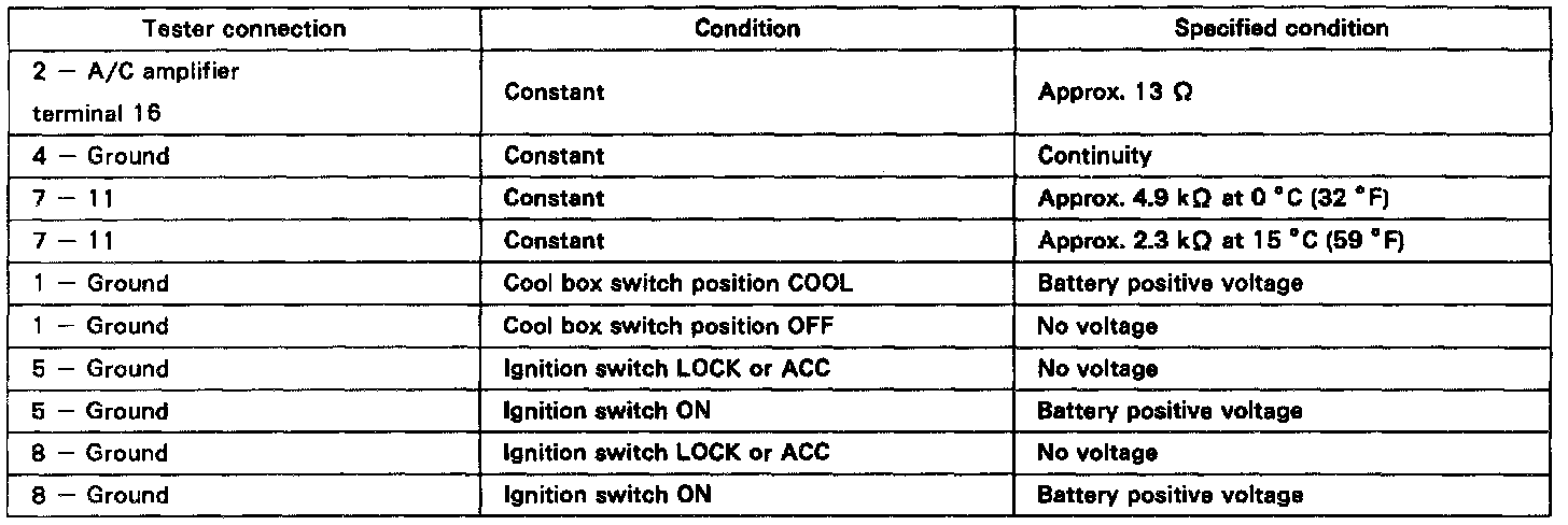 Disconnect the amplifier and inspect the connector on wire harness side, as shown in the chart.