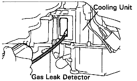 - Secure good ventilation (If not, the gas leak detector may react to volatile gases which are not refrigerant, such as evaporated gasoline and exhaust gas.)