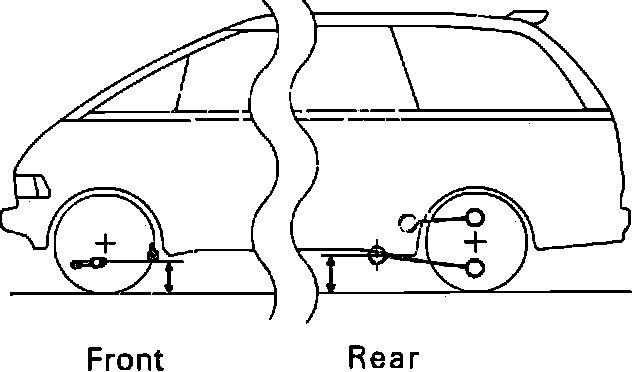 Front: Measure from the ground to the center of the lower suspension arm front mounting bolt.