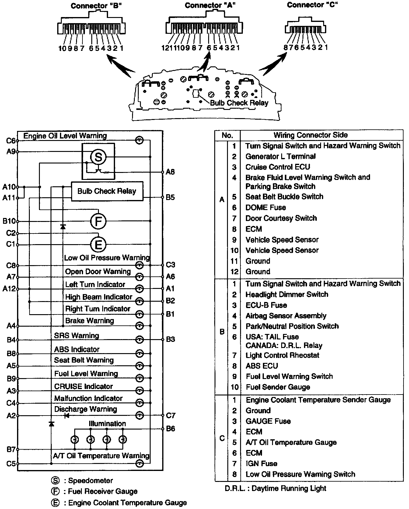 c. Turn the ignition switch ON, and check that the warning light lights up.