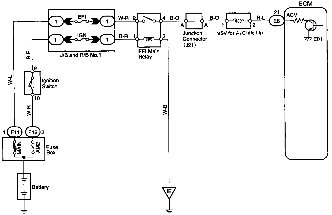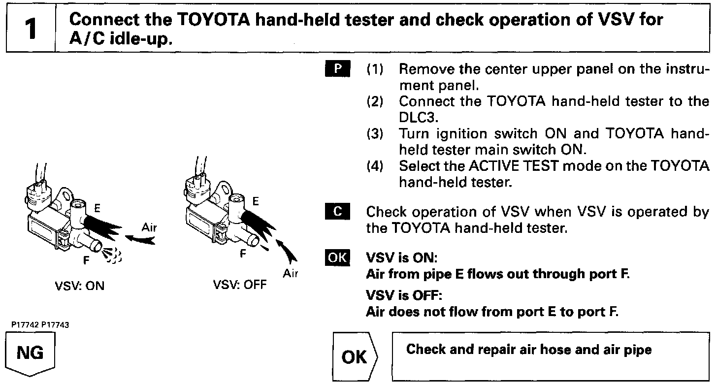 When the air conditioning operates (increased engine Load),this Circuit switches the VSV ON and increases the amount of bypass air to increase the idle speed, thus maintaining driveability.
