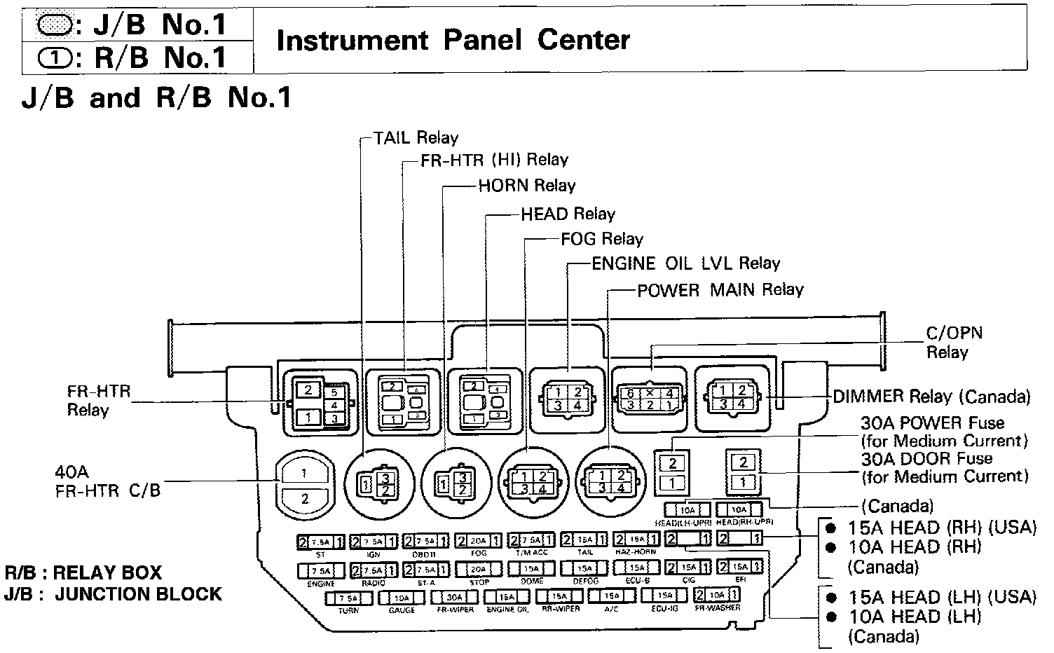 Locations-J/B No.1, R/B No.1 Instrument Panel Center (Fig 19):