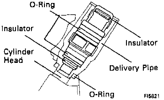 4. Install the injector in the delivery pipe and cylinder head as shown in the illustration.