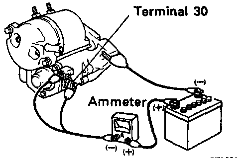 b. Check that the starter rotates smoothly and steadily with the pinion gear moving out. Check that the ammeter shows the specified current.