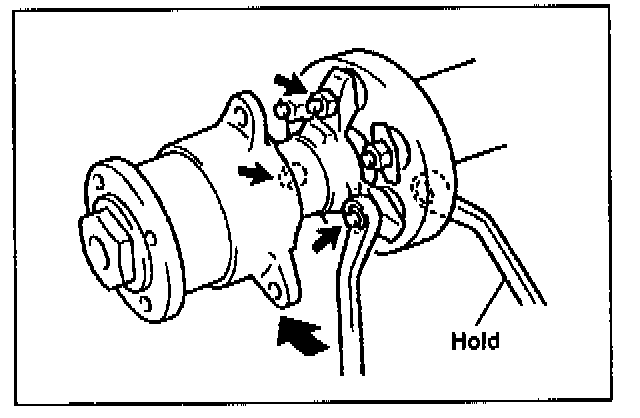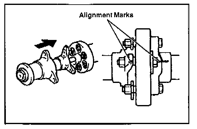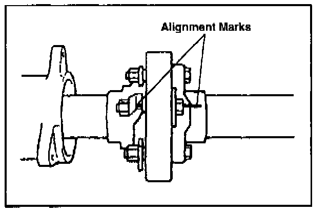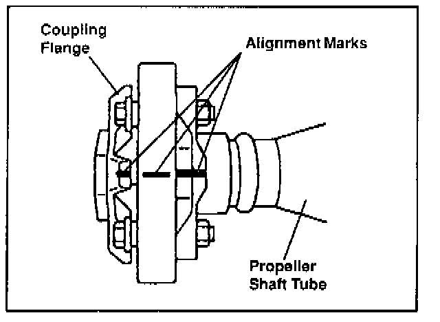 If the coupling flange is hard to disengage from the flexible coupling collar, remove the flexible coupling from the propeller shaft tube, then fasten it in a vise to remove the flexible coupling.