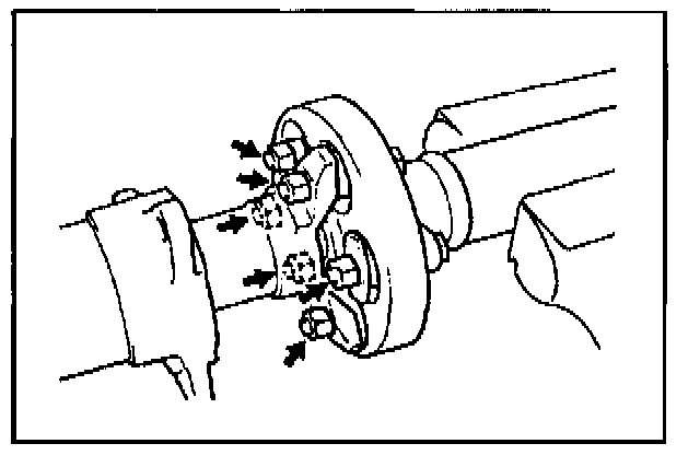 ^ Insert the bolts on the flexible coupling side, and tighten the nuts on the propeller shaft tube side.