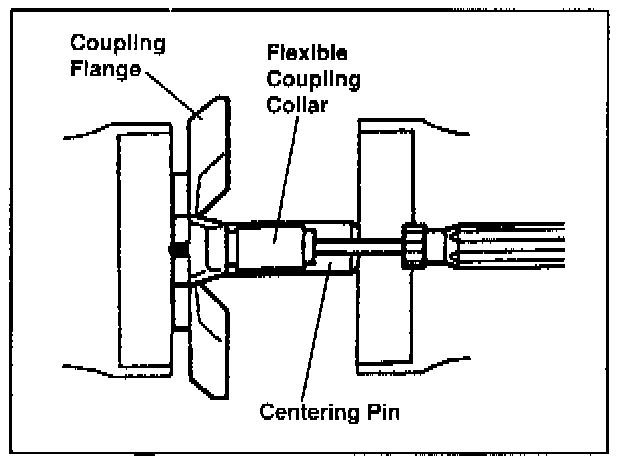 E. Using the old nuts and bolts, tighten the flexible coupling to the coupling flange, engaging the collars, then remove the bolts.