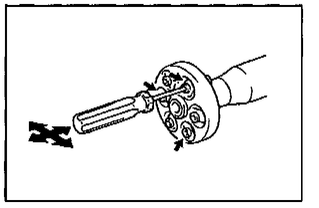 E. Insert the screwdriver through the flexible coupling hole (from the flexible coupling side to the coupling flange side), then apply rotational force to disengage the flexible coupling collar from the flange.