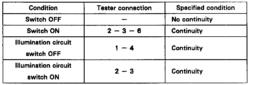 If continuity is not as specified, check the bulb or replace the switch.