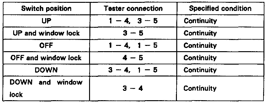 POWER WINDOW MASTER SWITCH INSPECTION1. INSPECT SWITCH CONTINUITY