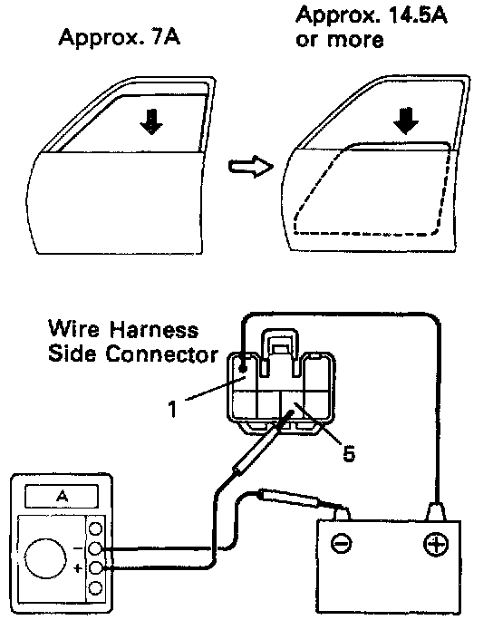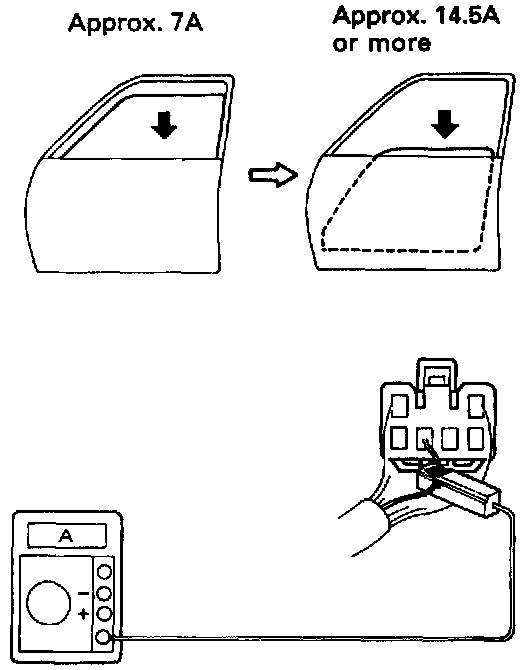 e. Check that the current increases up to approximately 14.5 A or more when the window stops going down.